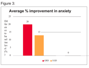 In line with the ‘biopsychosocial’ approach, as discussed in the introduction, it is known the ‘the issue is not always in the tissues’. Stress and raised cortisol levels lead to a prolonged ‘fight or flight’ response which can also lead to chronic pain. Both the GRD and UGD groups also benefited from a significant reduction in anxiety (GRD: 20% UGD:13%) and depression (GRD:32% UGD: 18%).